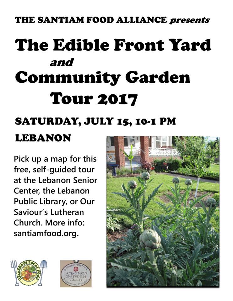 The Edible Front Yard and Community Garden Tour is sponsored by the Santiam Food Alliance, with help from the Lebanon Garden Club and the Linn County Master Gardeners.