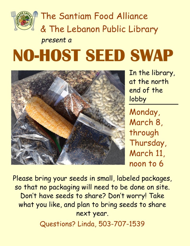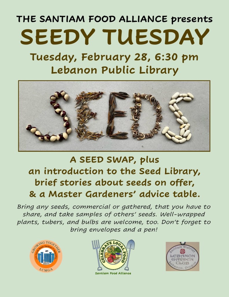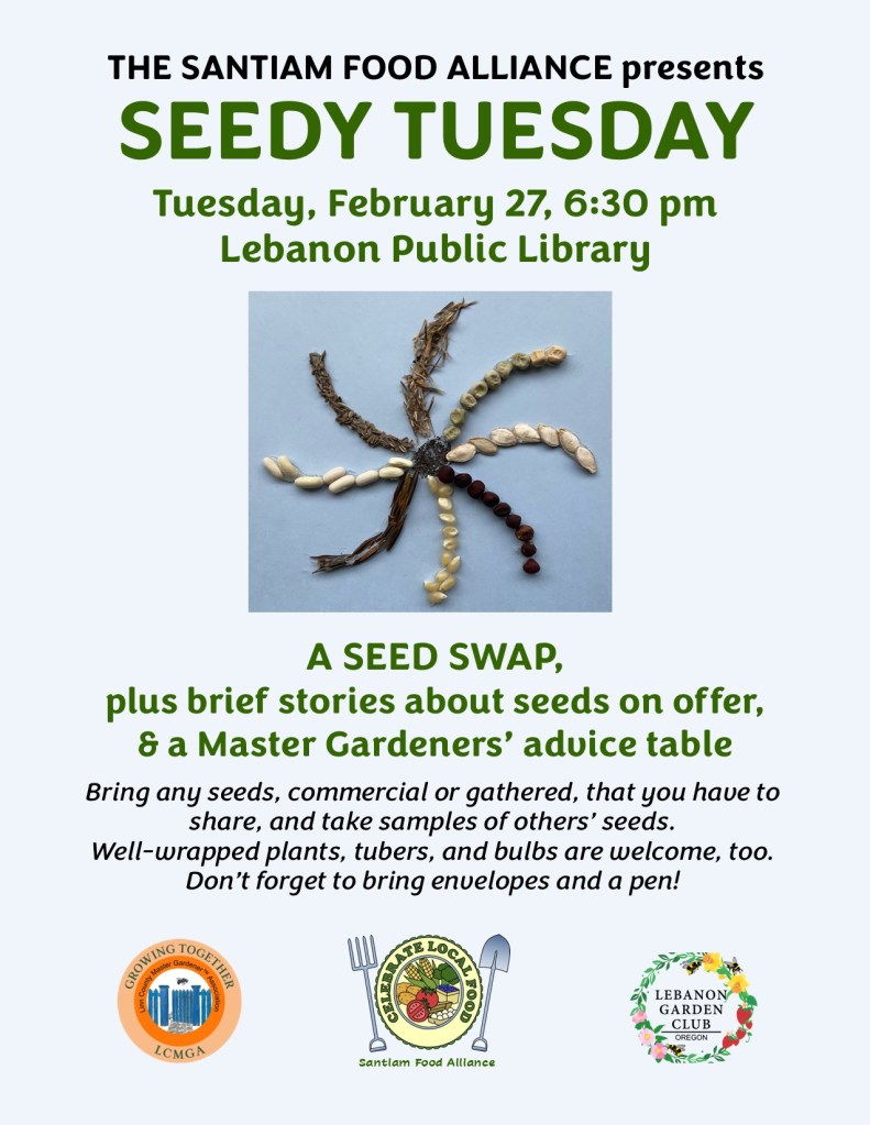 Cosponsoring Seedy Tuesday with the Santiam Food Alliance are the Lebanon Garden Club, OSU Extension Master Gardeners, and the Lebanon Public Library.